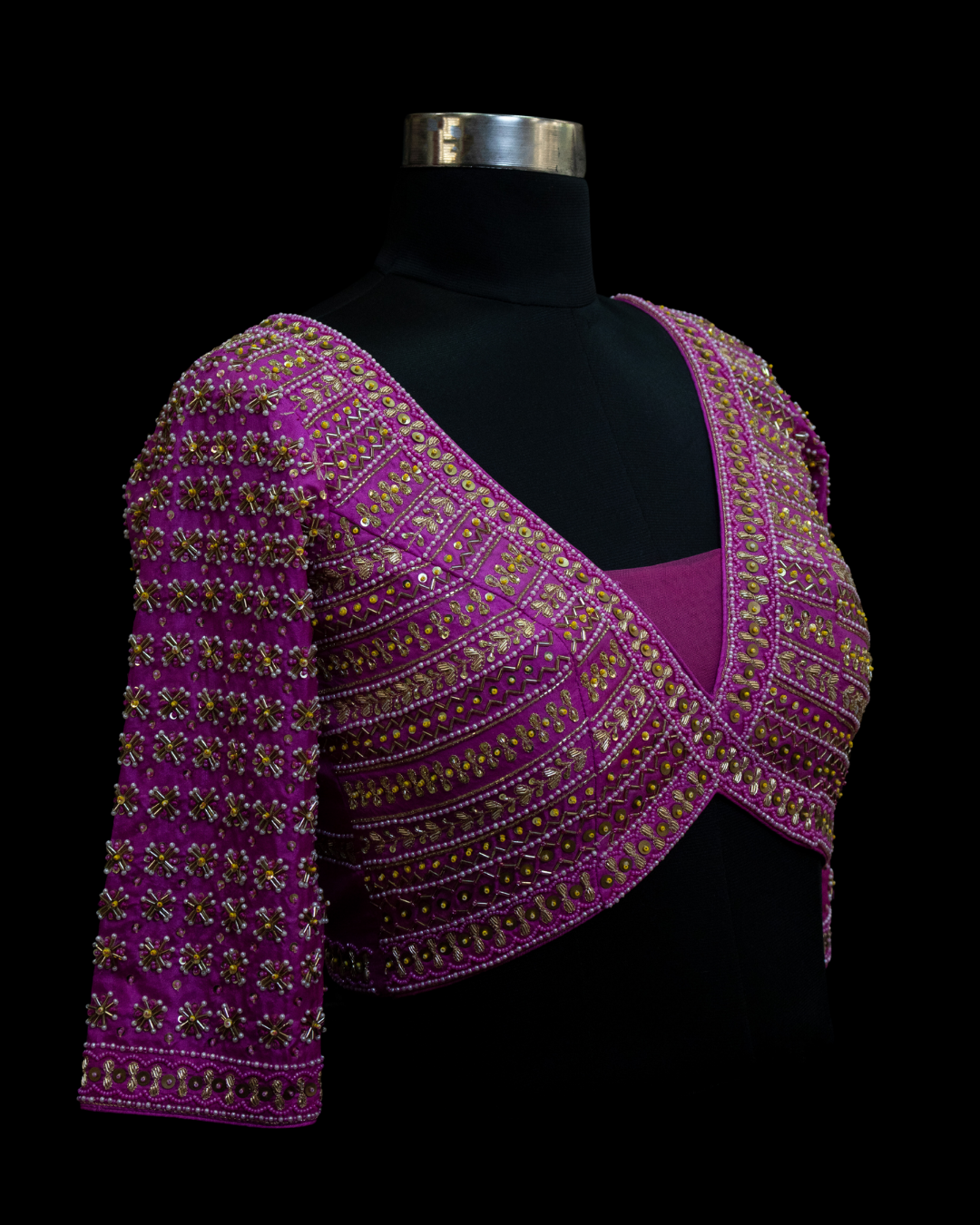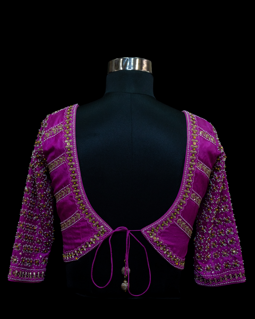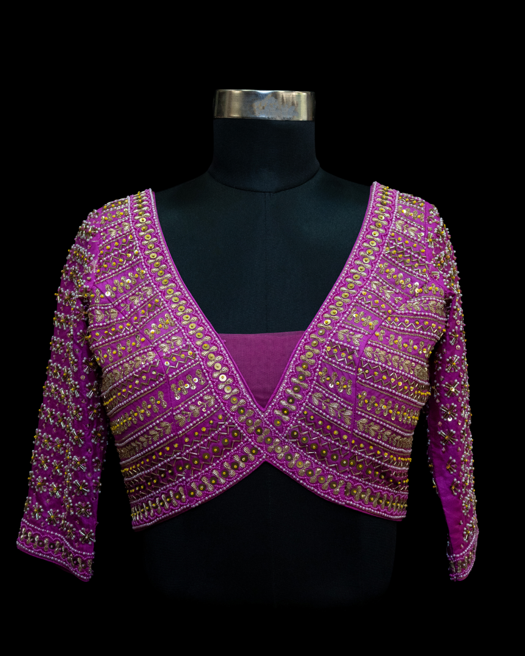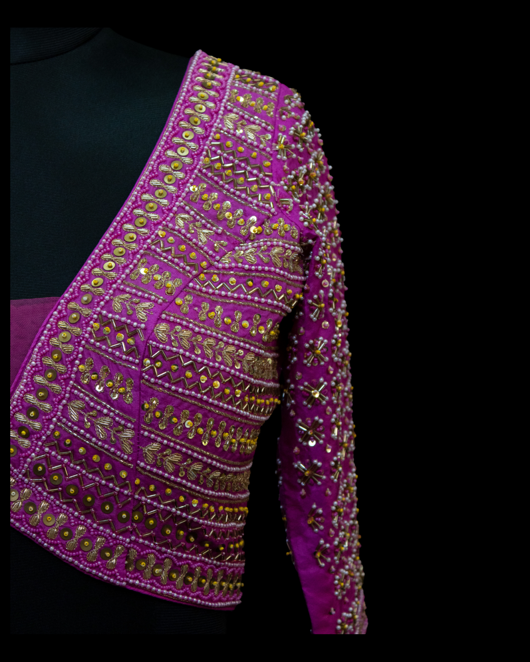 This Blouse is a must have for your festive wardrobe as it is made of premium pure silk. Further embellishment includes hand embroidery on front, back and sleeves