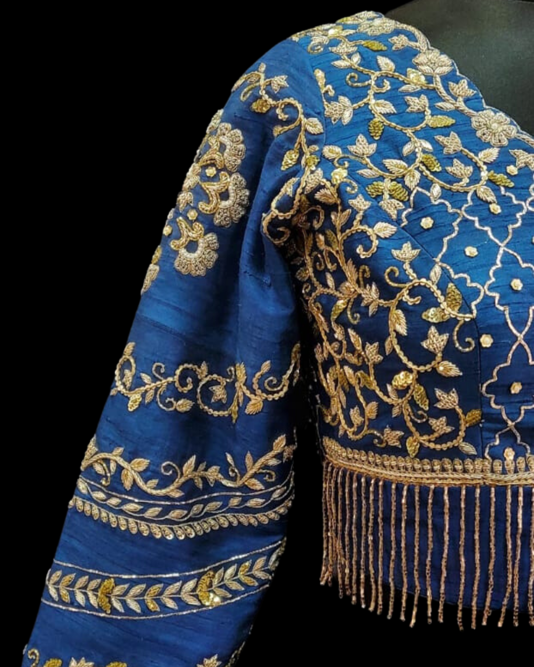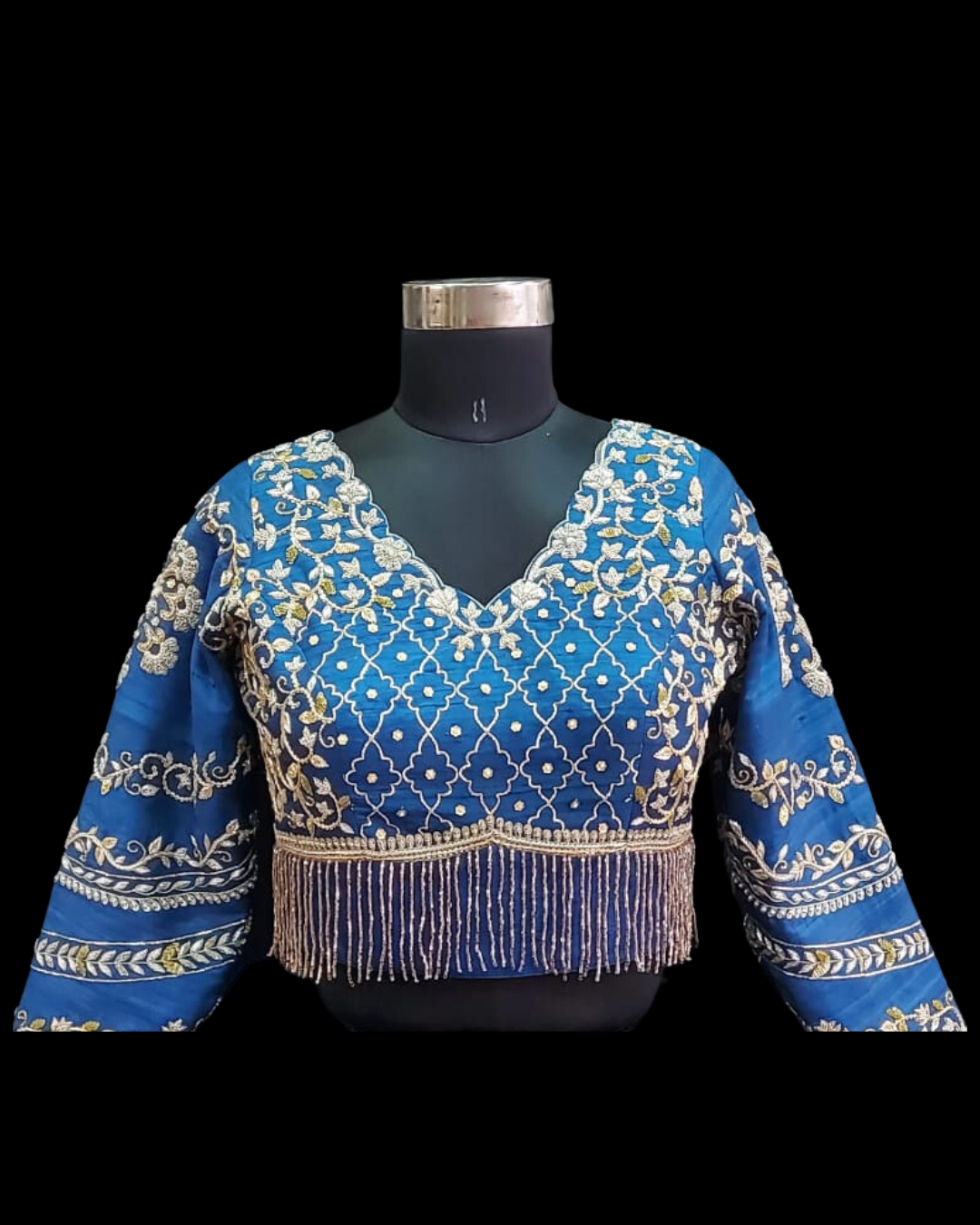 This Blouse is a must have for your festive wardrobe as it is made of premium pure silk. Further embellishment includes and attractive hand embroidery on front, back and sleeves
