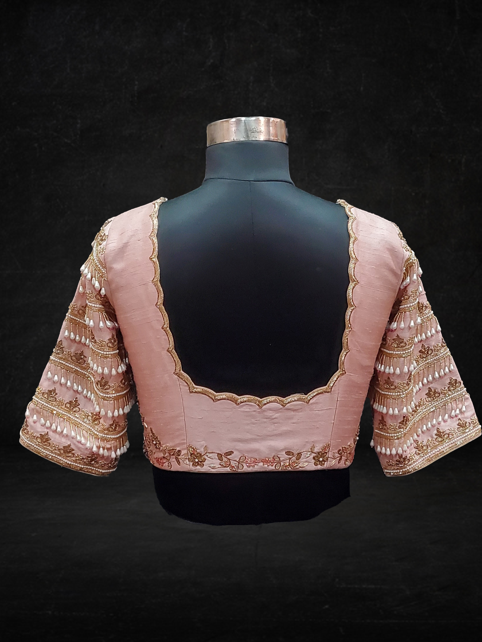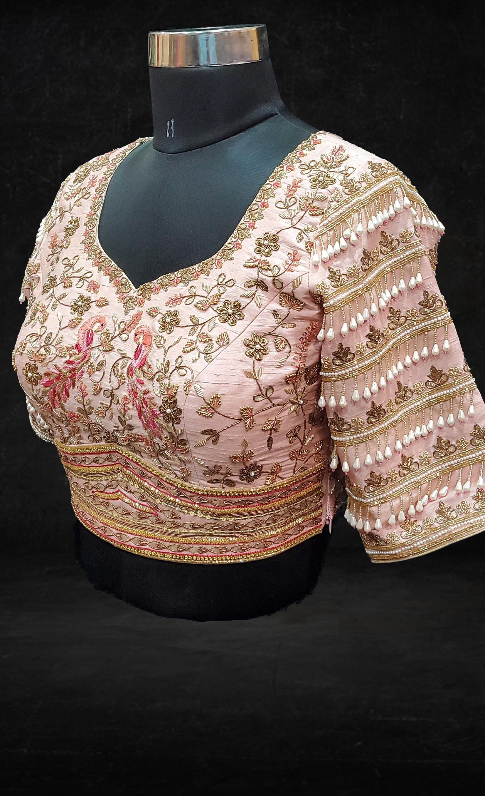 This Blouse is a must have for your festive wardrobe as it is made of premium pure raw silk. Further embellishments includes an attractive hand embroidery on front, back and sleeves
