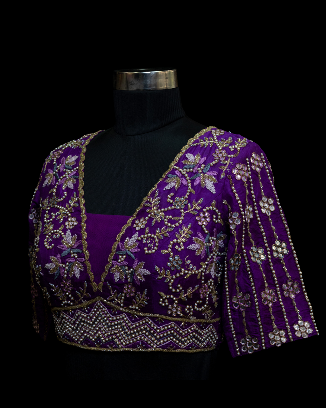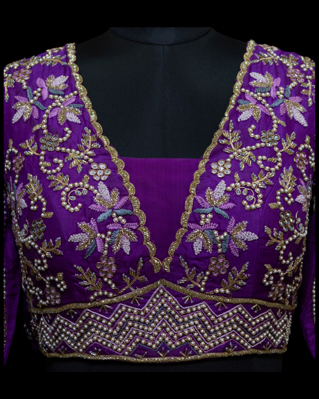 This Blouse is a must have for your festive wardrobe as it is made of premium pure silk. Further embellishment includes hand embroidery on front, back and sleeves