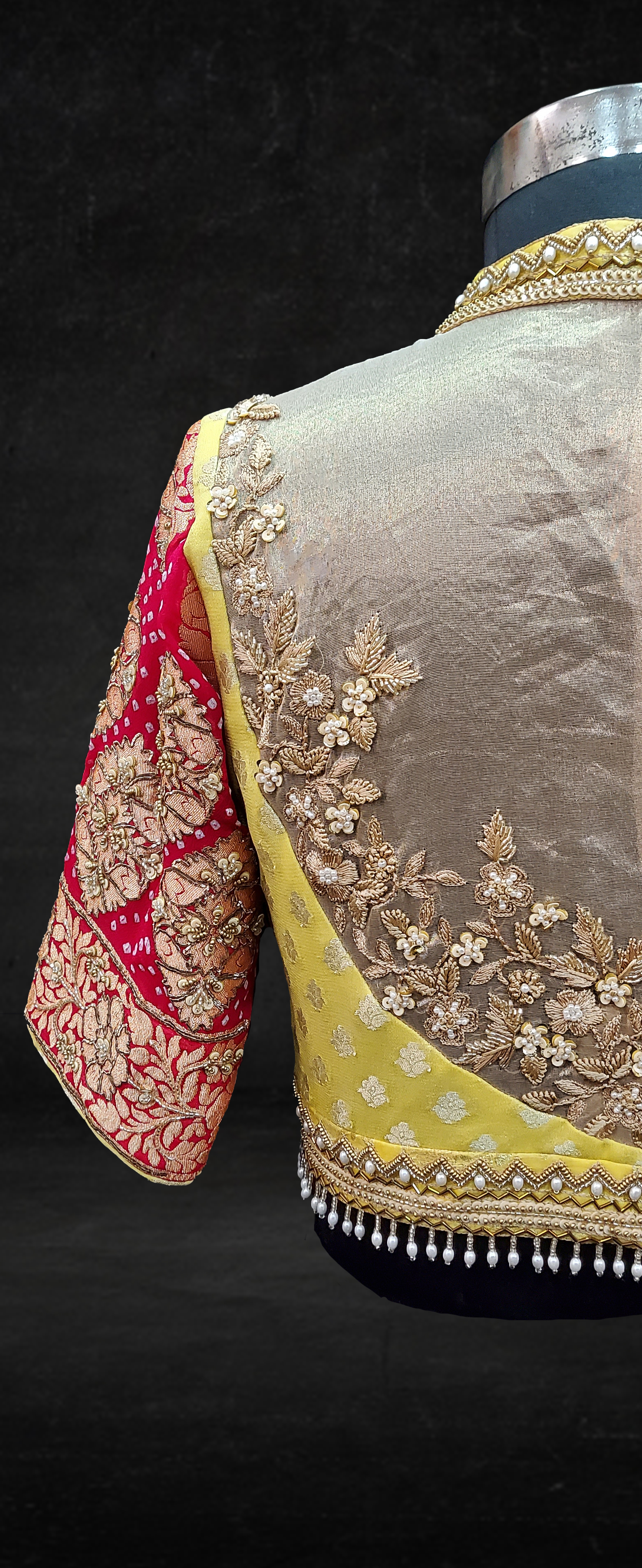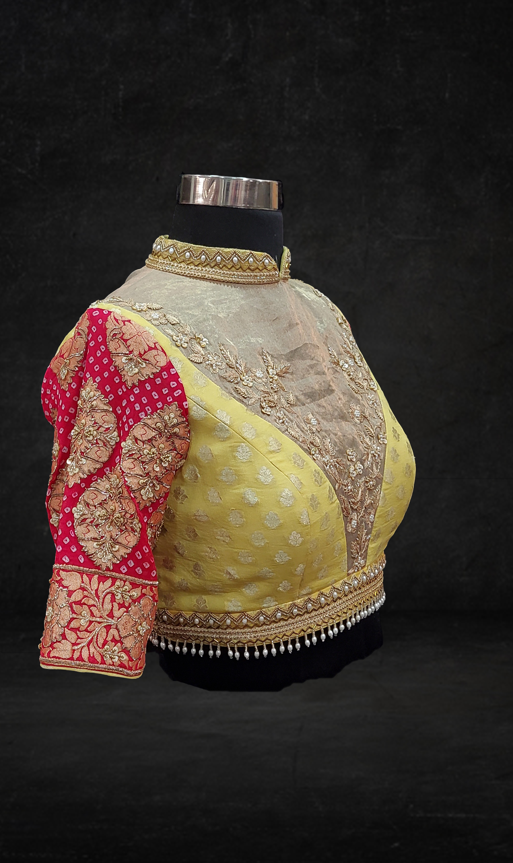 This Blouse must have for your festive wordrobe as it is made of premium pure silk. Further emblishments includes an attractive hand embroidery on front, back and sleeves.