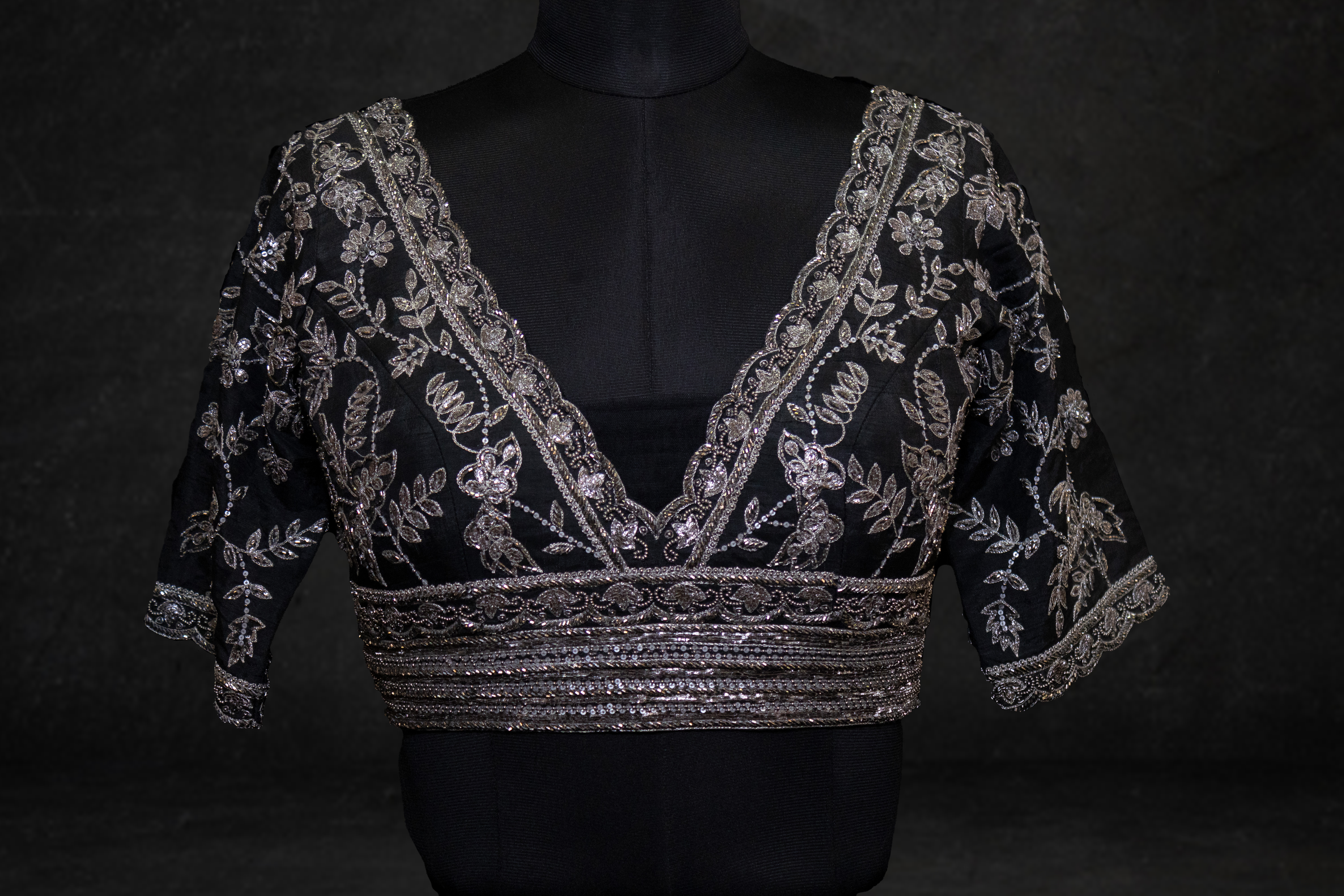 This blouse must have for your festive wordrobe as it is made of premium pure silk. Further emblishment includes and attractive hand embroidery on front, back and sleeves